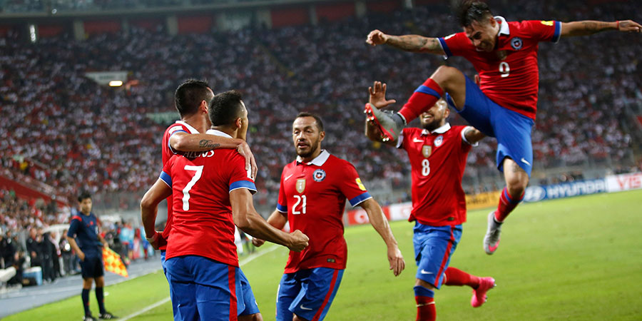 Los goles chilenos fueron anotados por: Alexis Sánchez (7’y 44′) y Eduardo Vargas (41′ y 49′), mientras que para Perú marcaron Farfán (10′ y 36′) y Paolo Guerrero (90′).
