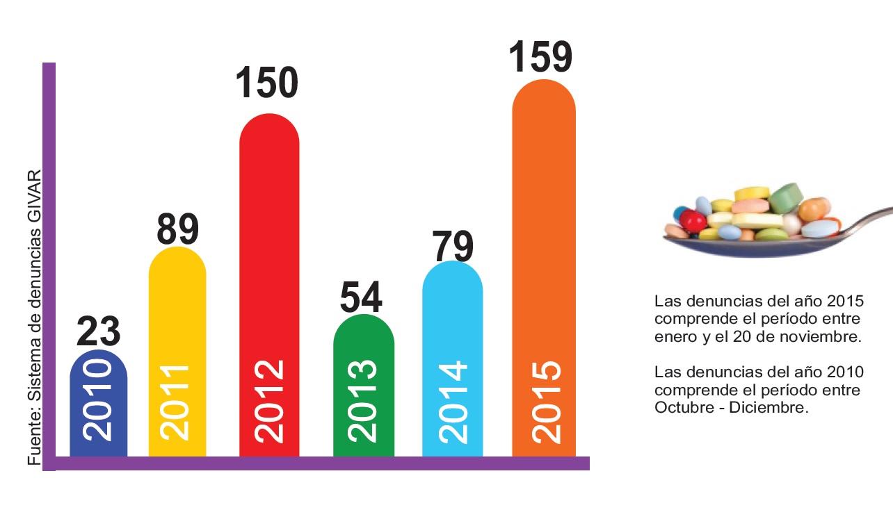 Lima, Perú.- Un informe presentado por el grupo de vigilancia de abastecimiento de medicamentos antirretrovirales GIVAR, revela que el 2015, fue el año que más denuncias presentaron las personas que viven con el VIH, llegando a 159, frente a las 79 del 2014; 54 en el 2013 y 150 del 2012.