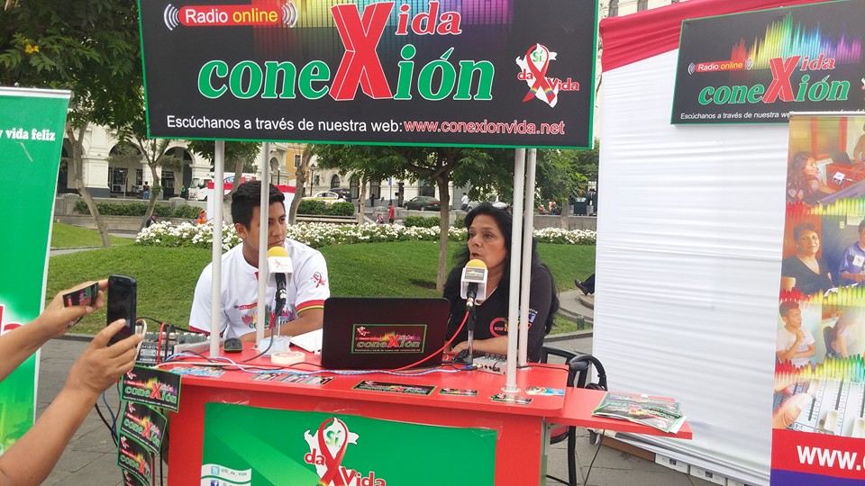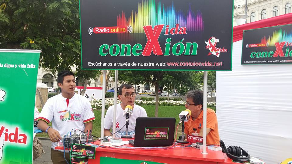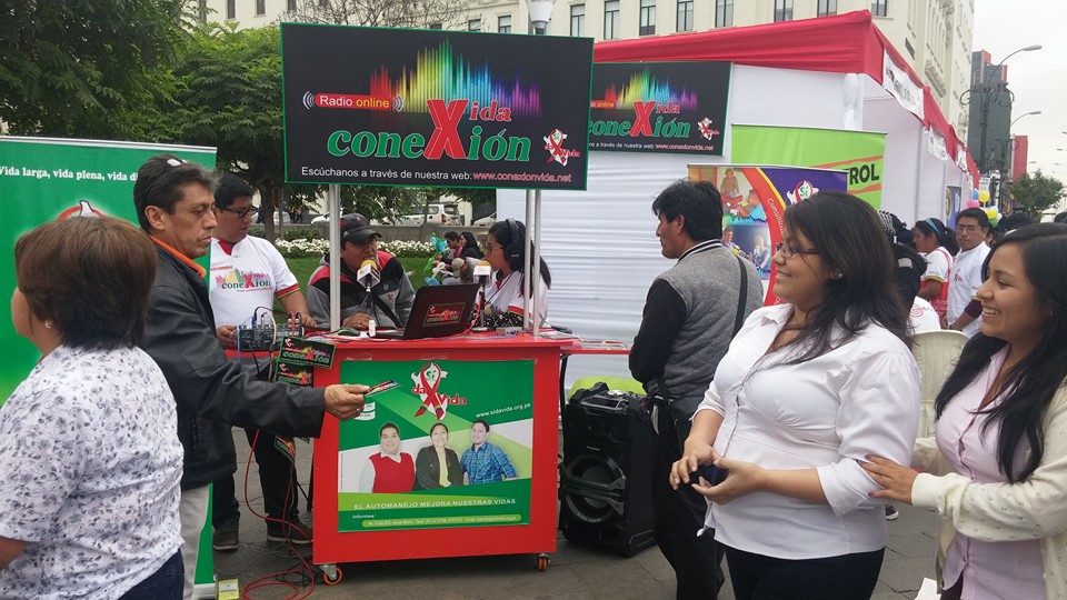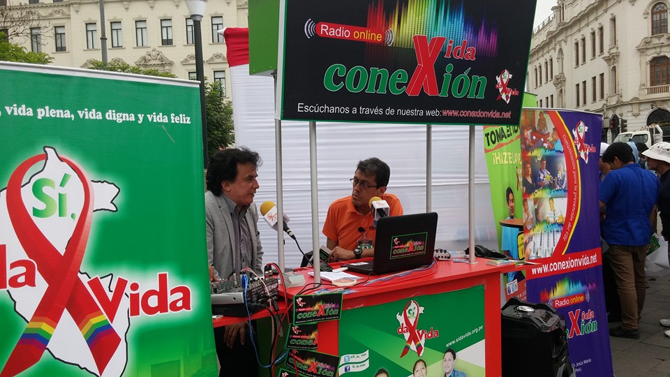 Lima, Perú .- Las cabinas de radio Conexión Vida, se trasladaron a la plaza San Martín, del Centro histórico de Lima, donde se desarrolló la Feria Informativa de Prevención del VIH que fue organizada por el Ministerio de Salud y las organizaciones sociales.