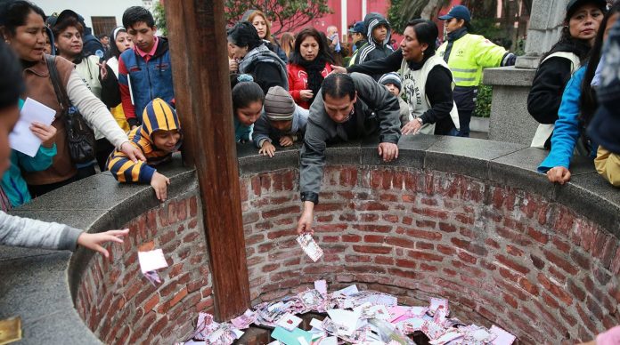 Lima, Perú.- Desde las 06.00 horas, miles de fieles se aglomeran en el santuario de Santa Rosa de Lima, en la primera cuadra de la avenida Tacna, para dejar sus cartas en el tradicional pozo de los deseos y rendir homenaje a la santa limeña en su día.