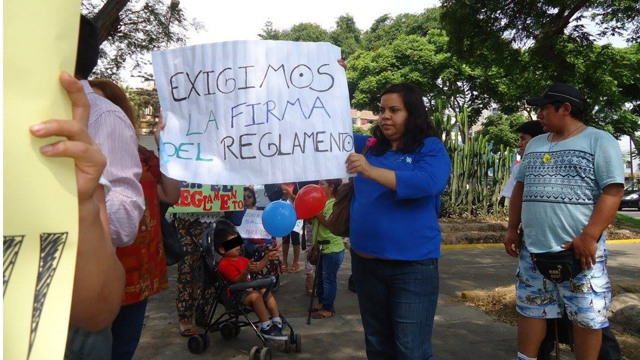 Se debe conocer que más de tres ministros de salud y dos gobiernos han pasado desde la aprobación de la ley, pero hasta la actualidad el Ministerio de Salud (MINSA) no firma el Reglamento que el año pasado fue elaborado en diversas sesiones de trabajo con los mismos pacientes y usuarios, pero falta la voluntad política para que la actual ministra Patricia García lo firme.