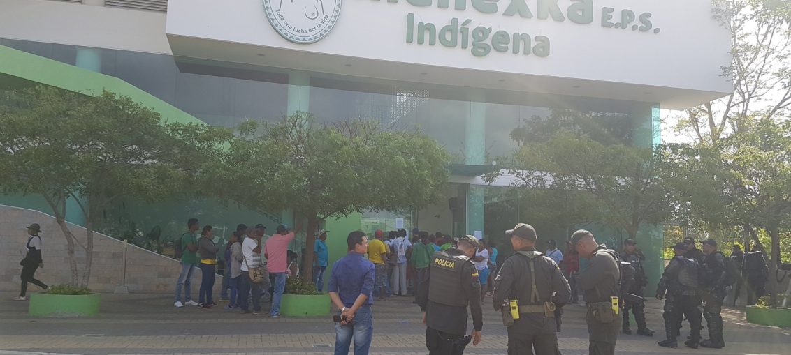 A raíz de la intervención y liquidación de la EPS Indígena las autoridades indígenas zenú en compañía de la guardia indígena ingresaron a la fuerza a las instalaciones de la entidad y a esta hora se reúnen con funcionarios de la Superintencia de Salud