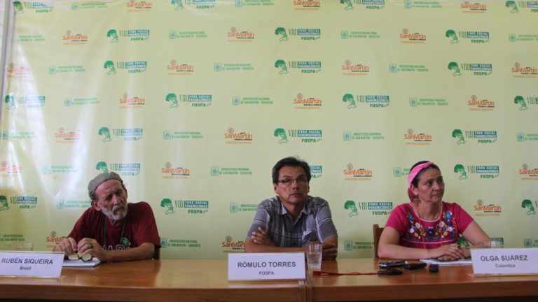 Tarapoto, Perú.- En el marco del VIII Foro Social Panamazónico, que se realiza en la ciudad peruana de Tarapoto, Rubén Siqueira, coordinador de la Pastoral de la Tierra de Brasil, y Olga Suárez, de la asociación Minga de Colombia, denunciaron la corrupción que impera en sus países y que afecta de manera especial a la Amazonía, y la impunidad en los casos de líderes locales y ambientalistas asesinados.