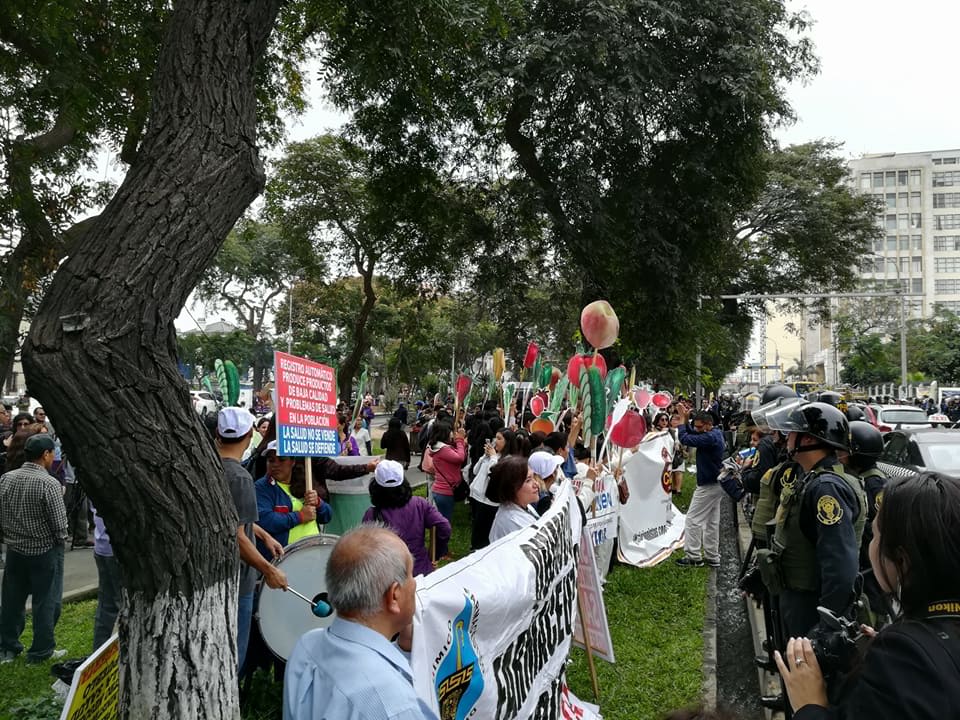 Lima, Perú.- Decenas de personas protestaron hoy frente a la sede del Ministerio de Salud de Perú (Minsa) contra el reglamento de la Ley de Alimentación Saludable, publicado este sábado, por considerar que tiene parámetros menos estrictos que los estipulados por la Organización Panamericana de Salud (OPS).