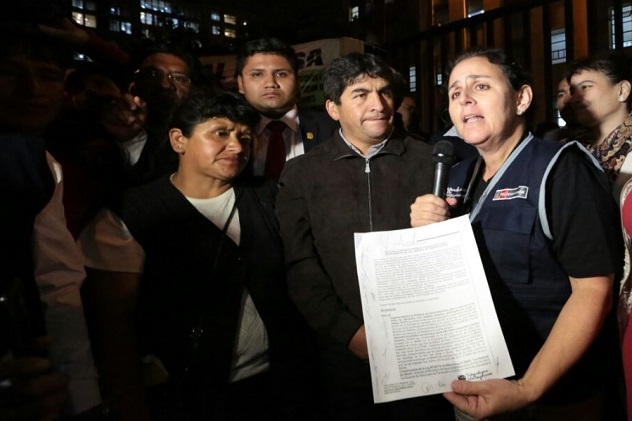 Lima, Perú.- Luego de que esta tarde, en una reunión multisectorial llevada a cabo en la Presidencia del Consejo de Ministros (PCM), se mostraran satisfechos con las acciones emprendidas por el Ministerio de Salud (Minsa) y firmaran un acta de acuerdo de partes, pobladores del distrito Simón Bolívar, de la provincia y región Pasco, decidieron levantar la medida de fuerza por la que mantenían desde hace varios días un plantón en el frontis de la sede principal del Minsa.
