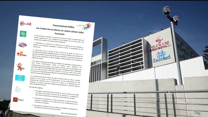 Lima, Perú.- La Red Peruana de Pacientes y Usuarios de servicios de salud, en conjunto con diversas organizaciones de la sociedad civil, se pronunció por el caso de la muerte de la mamá de la excongresista Ana Jara, quién falleció en el hospital rebagliati, al no poder ser derivada a la Unidad de Cuidados Intensivos por no contar con el documento nacional de identidad físico.