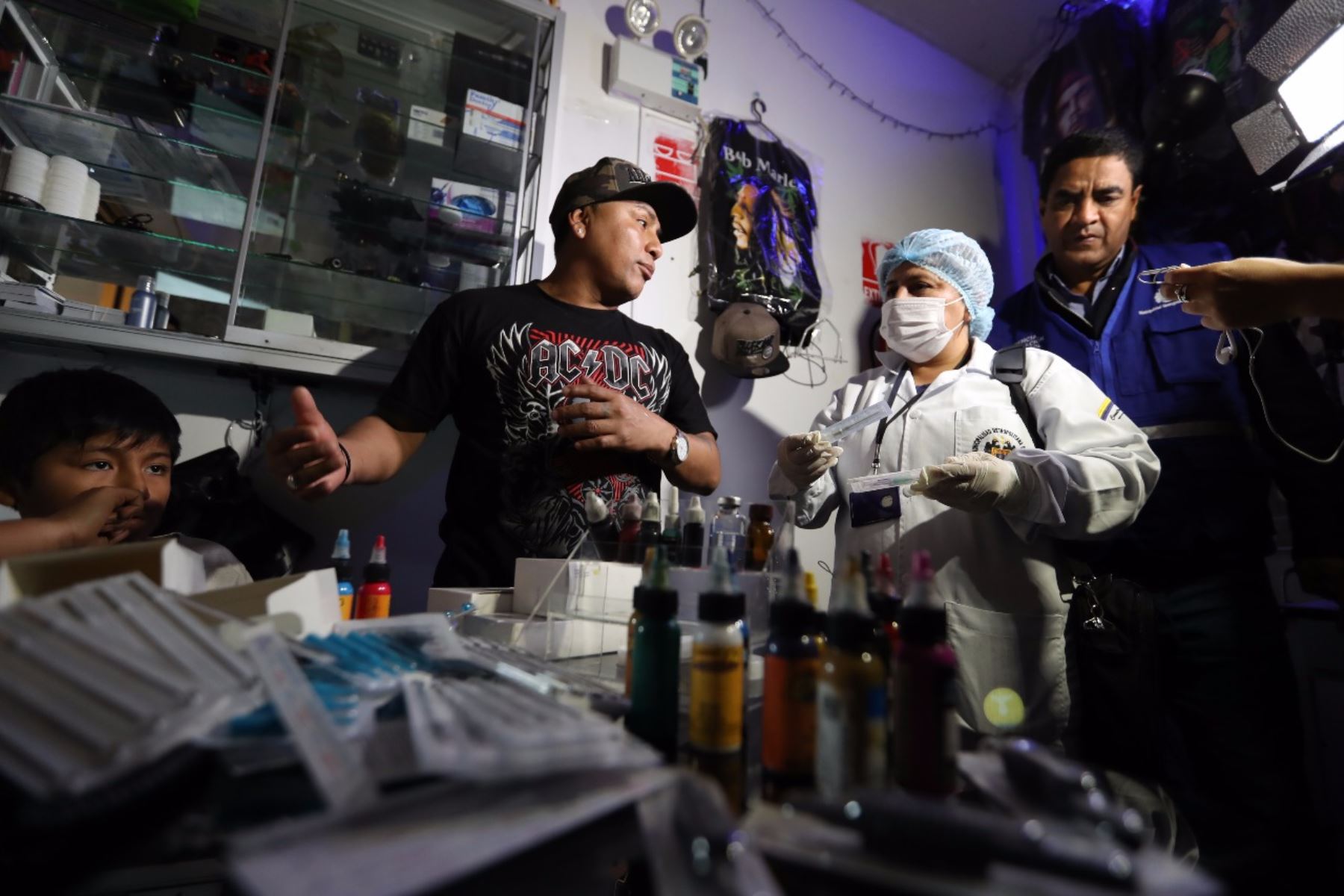 Alertados por denuncias que daban cuenta que tatuadores reutilizaban las agujas con las que trabajaban, inspectores de Vigilancia Sanitaria de la comuna limeña ingresaron a los locales verificando que, si bien esta peligrosa práctica no se daba allí, los trabajadores de los locales no conservaban ni desechaban adecuadamente estos instrumentos.