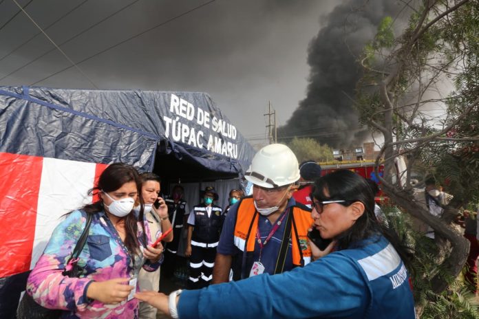 Lima, Perú.- El Ministerio de Salud (Minsa), a través de los brigadistas de intervención inicial de la Dirección General de Gestión de Riesgos de Desastres y Defensa Nacional en Salud (Digerd) y personal médico del Sistema Móvil de Atención de Urgencias (SAMU), atendió hasta el mediodía a 87 personas afectadas por inhalación de humo tóxico.