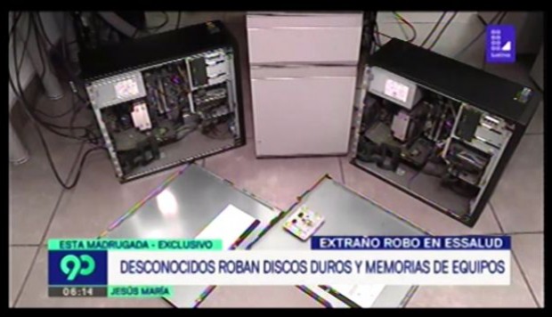 Lima, Perú.-Delincuentes robaron tarjetas de memoria y discos duros de seis computadoras de la oficina de Gerencia Central de Essalud, en el distrito de Jesús María.