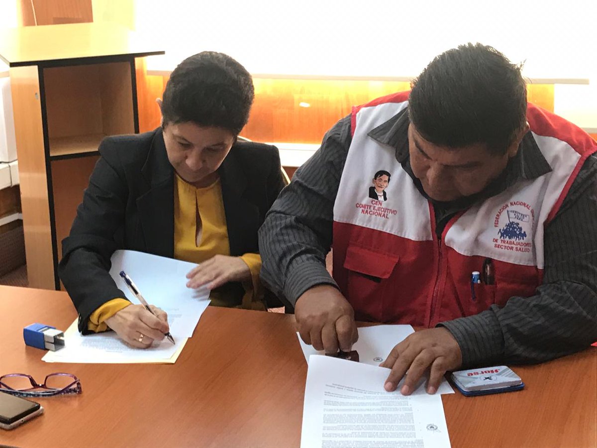 El documento fue firmado por la viceministra de Salud Pública y el secretario general de la Fenutssa, así como por otros dirigentes nacionales.
