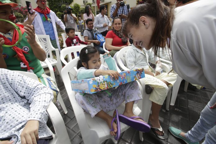 Lima, Perú.- Los pequeños pacientes del Instituto Nacional del Niño INS – Breña, recibieron esta mañana la visita sorpresa por Navidad de la ministra de Salud, Silvia Pessah, quien junto a los “Toribianitos”, les llevó música, regalos y mucha diversión en esta fecha especial donde se recuerda el Nacimiento del Niño Jesús.