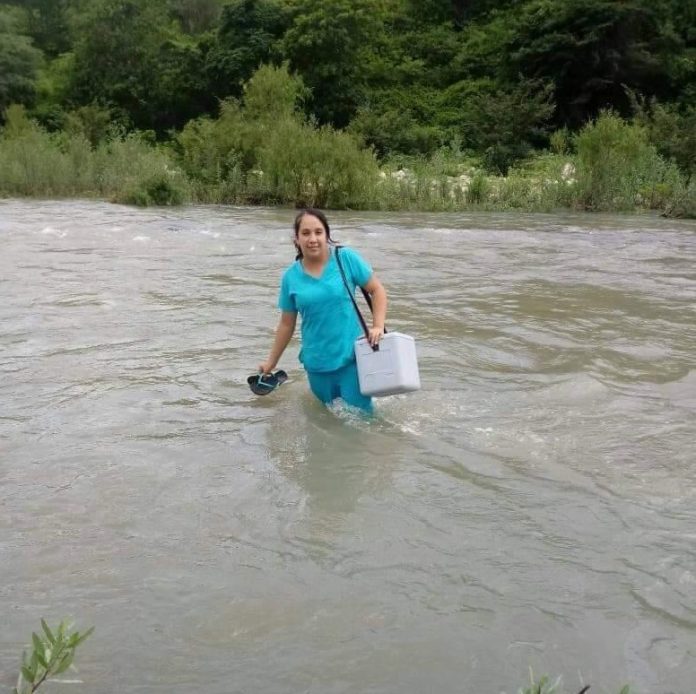 No le importó el peligro que representaba para su vida, Edid Chumacero cruzó un crecido río para ir en busca de un recién nacido que necesitaba atención médica.