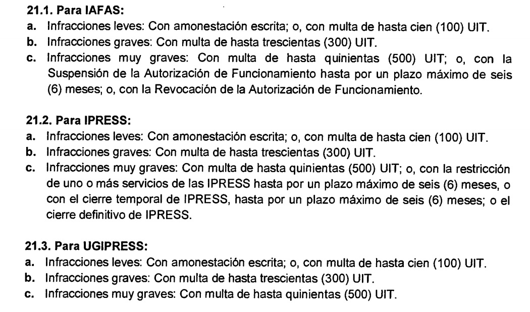 La sanción de la Clínica Versalles, se encuentra tipificada en el artículo 4 del Decreto Supremo N°031-2014- SA, la cual además de establecer multas por 500 UIT (Más de 2 millones de soles) establece el cierre temporal o definitivo de la institución prestadora del servicio de salud.