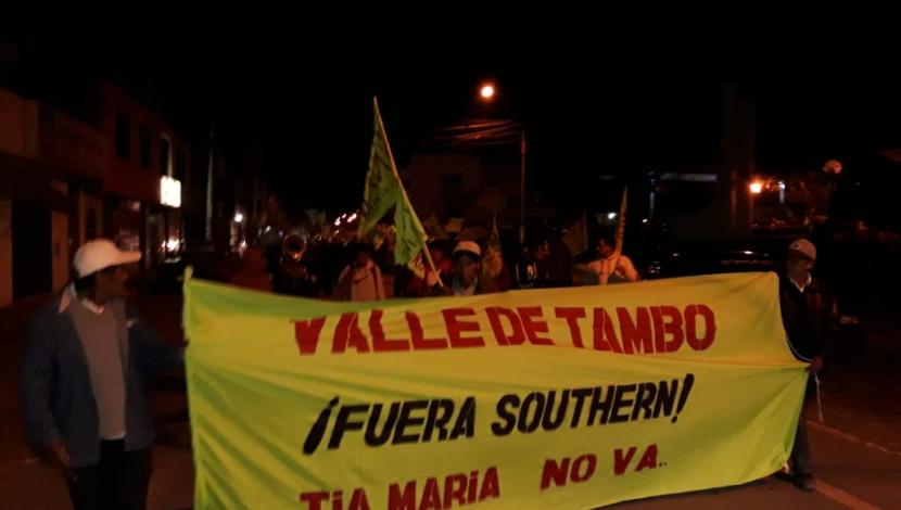 Arequipa, Lima.- Casi cerca de 500 residentes de Valle de Tambo se juntaron este martes en el distrito de Cocachacra, provincia de Islay (Arequipa), donde acordaron durante una asamblea acatar un paro indefinido desde el próximo 15 de julio, luego de que el Estado otorgará la licencia a Southern Perú Copper Corporation para la construcción del proyecto Tía María.