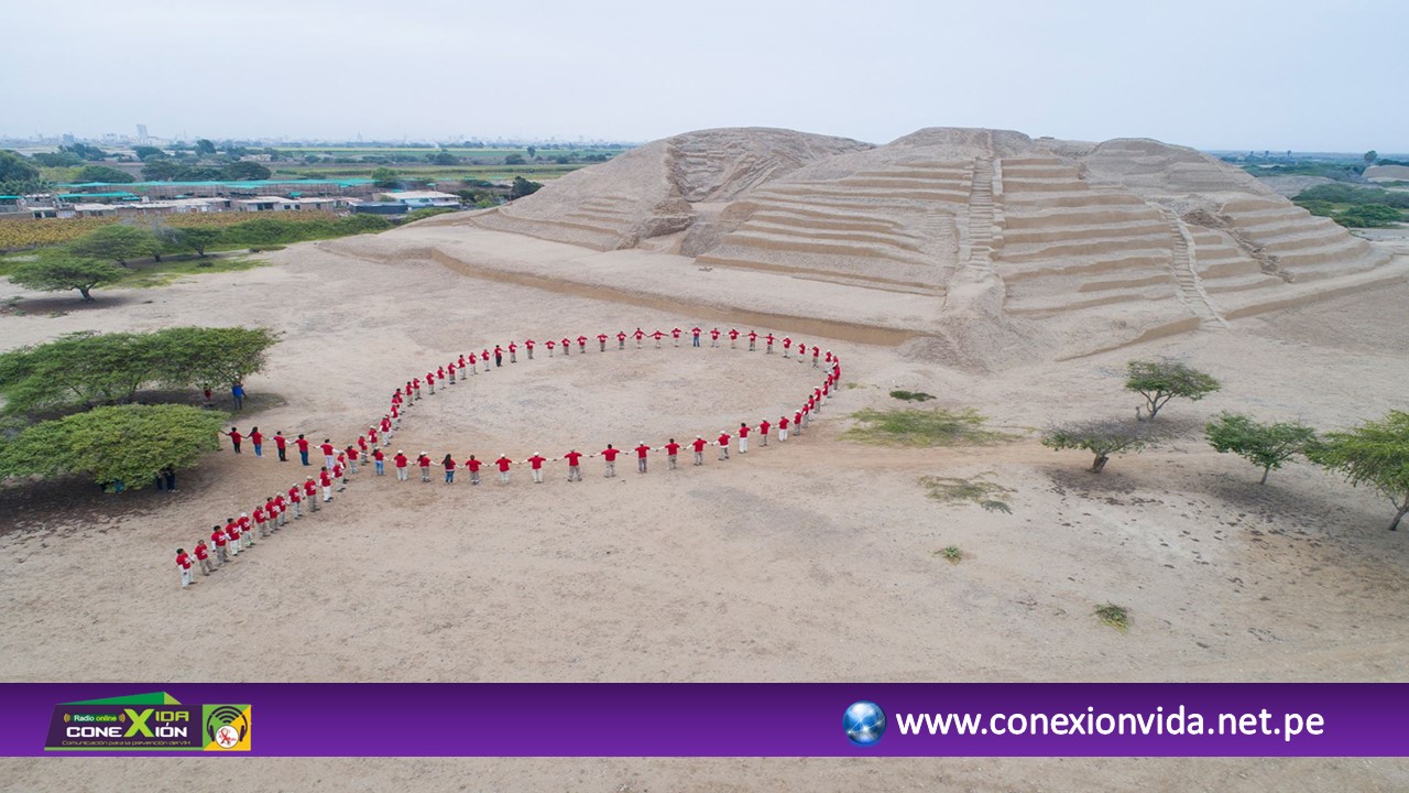 Autoridades, personal de salud y usuarios de salud formaron un gran lazo al pie de la huaca Toledo de Chan Chan, en la región La Libertad.
