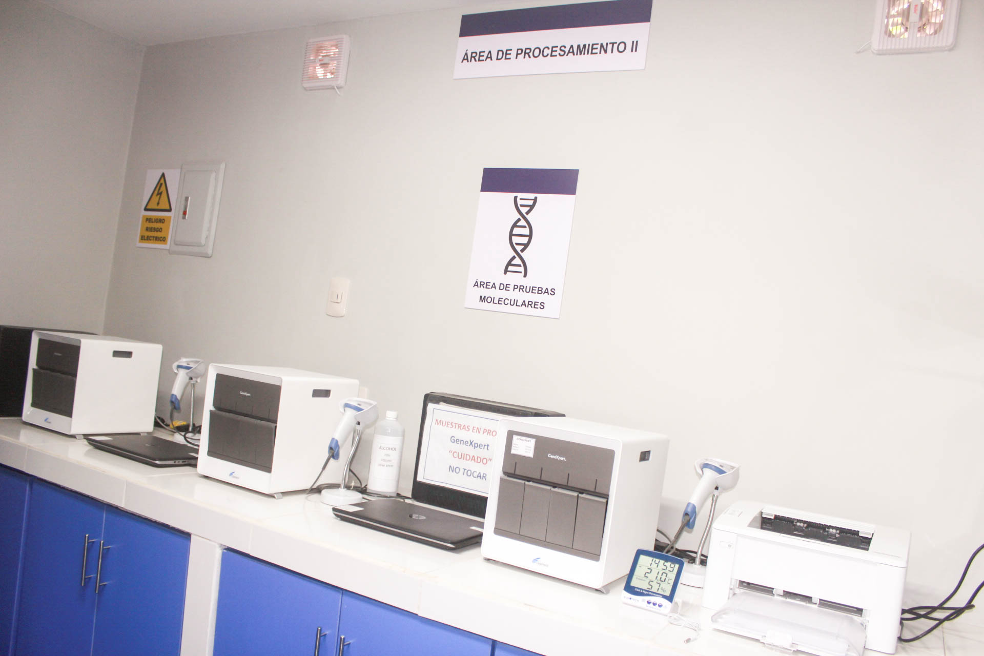 Cuenta con diversos equipos, entre ellos 03 equipos de GeneXpert, 2 aires acondicionados, 1 centrífuga y 1 refrigerador, lo cual permitirá mejorar los procesos de carga viral para VIH, diagnóstico de TB, pruebas de Clamidia, Hepatitis y Sífilis.