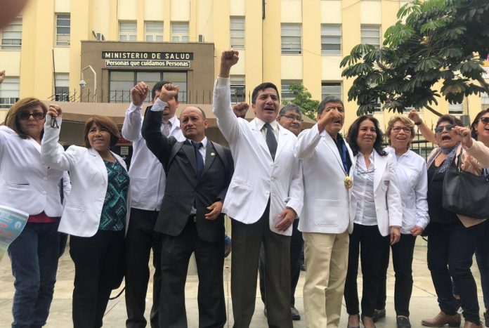 Lima, Perú.-Reclamando incumplimiento de las de las autoridades para mejorar el sector salud, más de 50 mil profesionales de la salud, conformados por Cirujanos Dentistas, Obstetras, Químicos Farmacéuticos, Nutricionistas, Psicólogos, Tecnólogos Médicos, Biólogos, Trabajadores Sociales y Veterinarios, realizaron una Protesta Nacional.