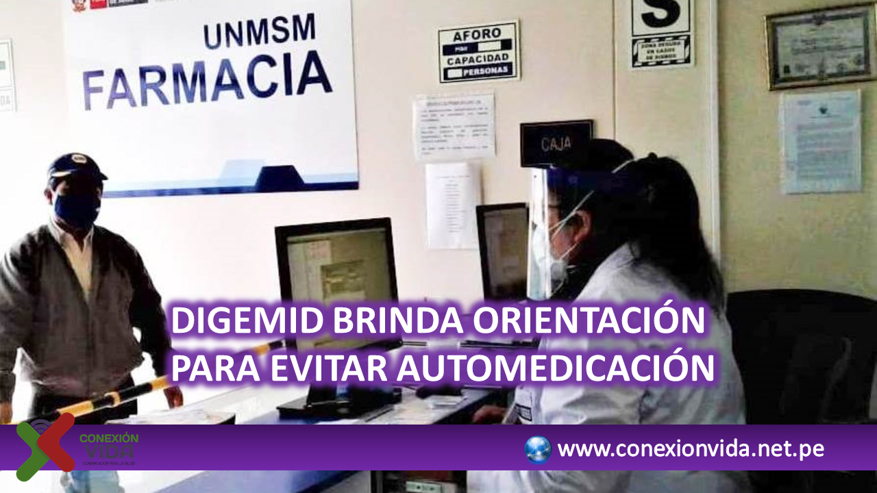 Lima, Perú.- Para evitar la automedicación y sus efectos adversos en la salud de la población, el personal de la Farmacia Institucional de la Dirección General de Medicamentos Insumos y Drogas (Digemid) del Ministerio de Salud, ubicada en la ciudad universitaria de la Universidad Nacional Mayor de San Marcos (UNMSM), orienta a la población sobre el uso adecuado de los medicamentos.