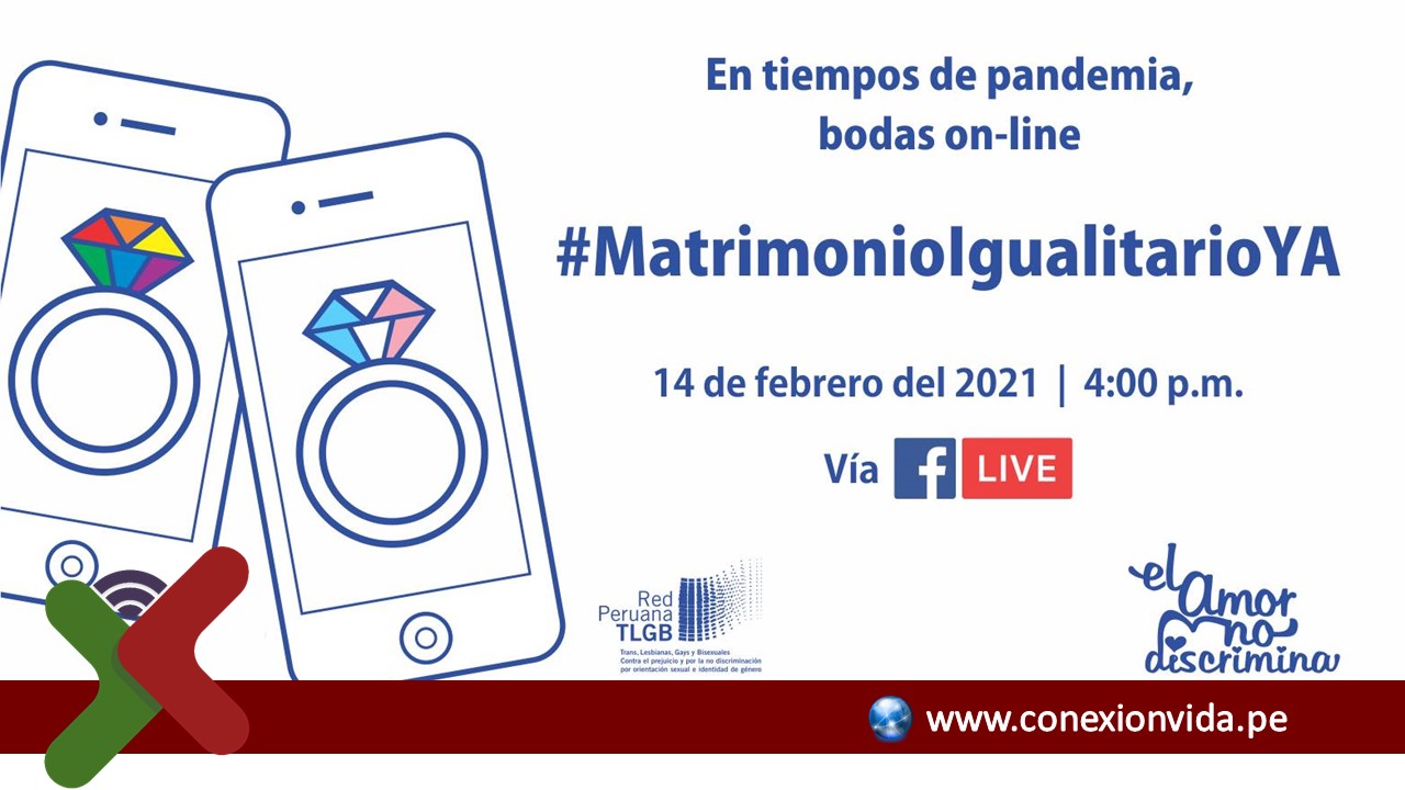 Tomando en consideración todas las medidas de bioseguridad, las parejas se casarán de manera simbólica, desde la seguridad de sus casas, este domingo 14 de febrero. La transmisión se realizará mediante la página oficial de la Red Peruana TLGB en Facebook (https://www.facebook.com/redperuanatlgbi).