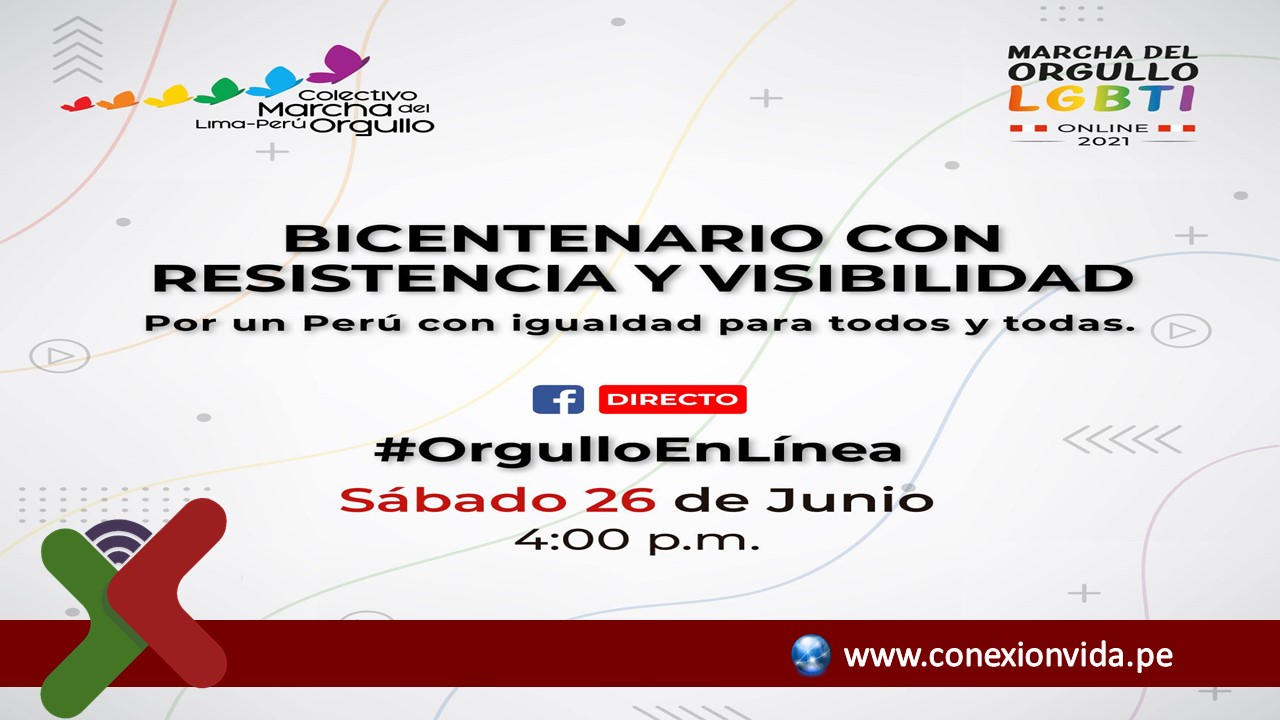 (Lima, 17 jun. 2021).- Este 2021, la Marcha del Orgullo Lésbico, Gay, Bisexual, Trans e Intersexual (LGBTI) de Lima se realizará por segundo año consecutivo de manera virtual. Esta vez, la transmisión se llevará a cabo el sábado 26 de junio, desde el Lugar de la Memoria, la Tolerancia y la Inclusión Social (LUM), a partir de las 4 de la tarde. La difusión será vía Facebook LIVE mediante el fan page del Colectivo Marcha del Orgullo (https://www.facebook.com/marchadelorgullolima).